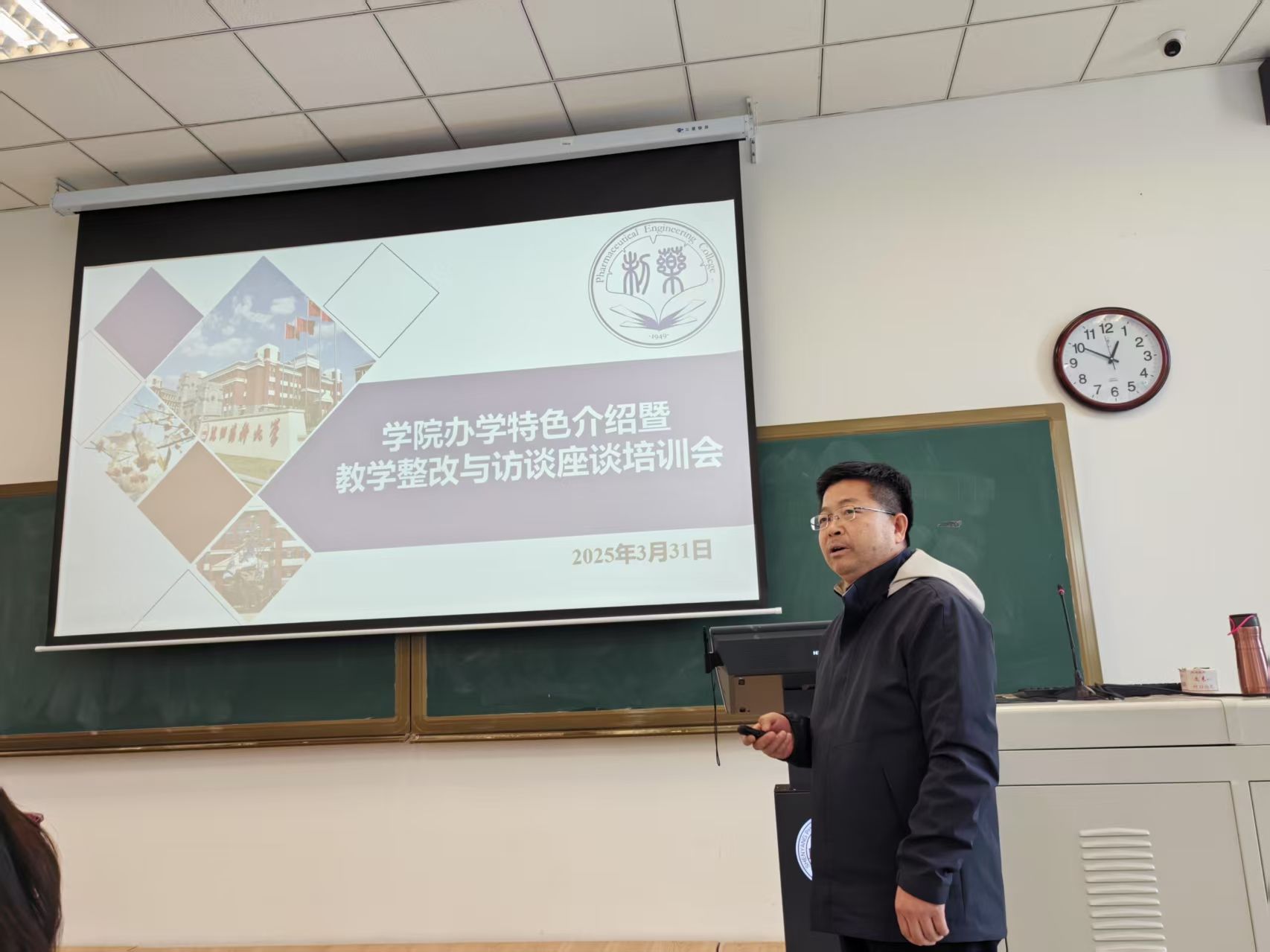 副院长郭永学围绕学院办学情况、教育教学亮点特色作了详细介绍,让教职工们对学院的优势和成绩有了更深入的了解。并针对教学基本材料整改、访谈座谈等环节进行了专项培训,详细讲解了整改要点和应对策略,为教职工们在评估准备过程中提供了切实可行的指导。