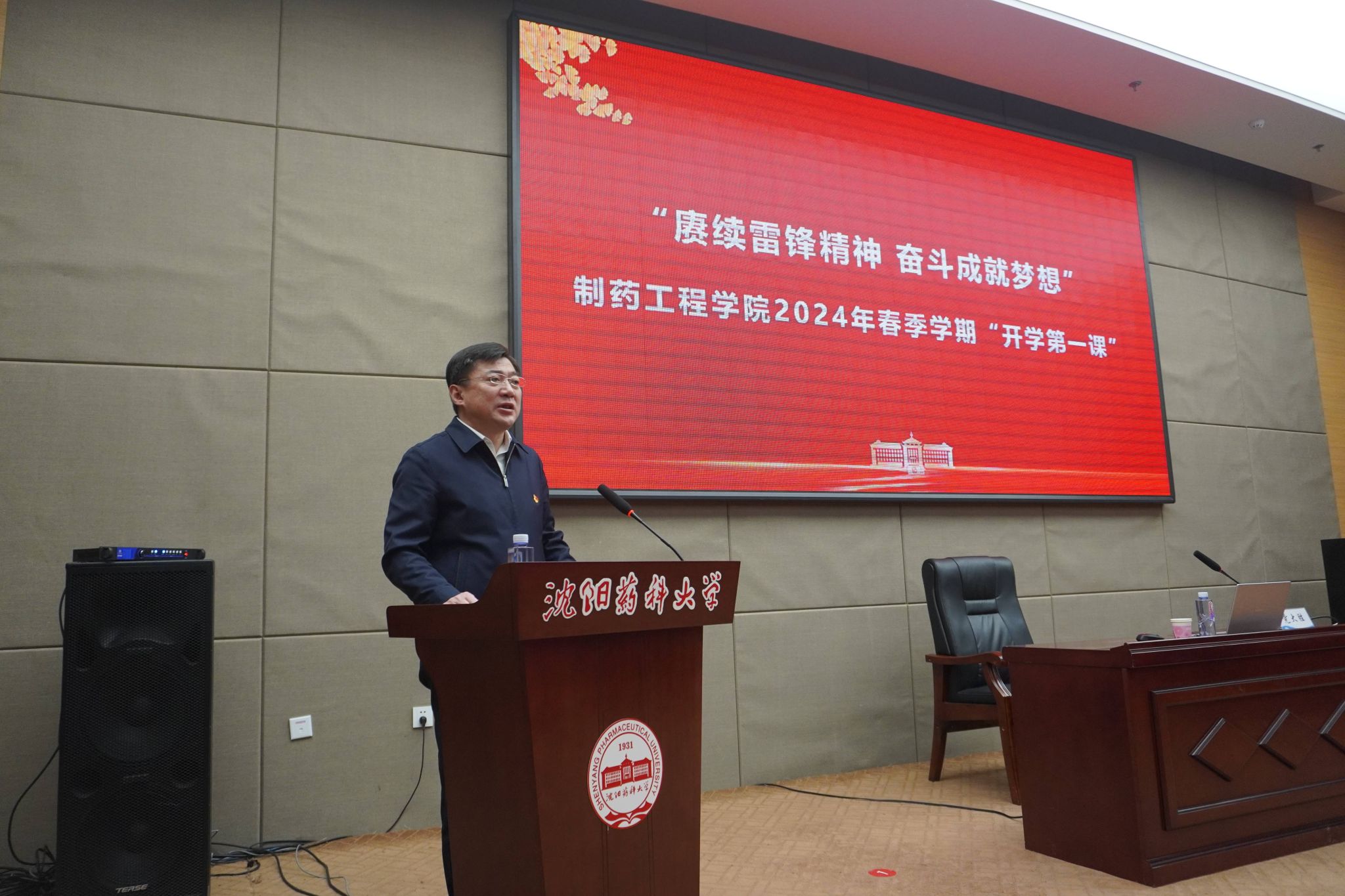 为贯彻党的教育方针,落实立德树人根本任务,引领学院师生弘扬雷锋精神,以昂扬的精神面貌奋进新学期,beat365平台官方网站于3月7日在南校区图书馆国为学术报告厅举办了以“赓续雷锋精神 奋斗成就梦想”为主题的新学期“开学第一课”活动。本次活动邀请北部战区总医院临床药师党大胜为学院师生授课。校党委副书记关雪峰、学院领导班子成员、全体辅导员以及师生代表参加活动。
