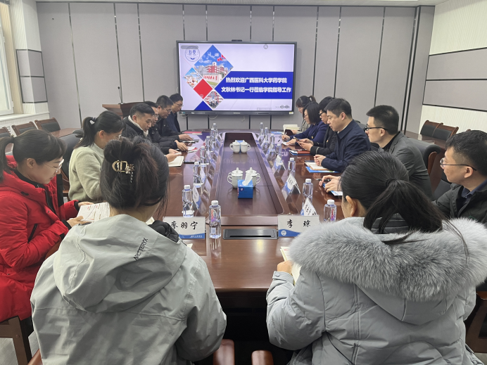 1月17日,广西医科大学药学院党委书记文秋林、药学院药物分析教研室主任苏志恒、学院办公室主任李福森、现代医药产业学院办公室主任谭斌、学院团委书记施承、学院纪委副书记兼组织员覃杨、办公室科员廖羽宁、中药学教研室秘书李琼一行8人来到beat365官网进行访问,就推动双方开展党建、学科平台建设、产学研、就业等交流学习进行调研。学院院长刘洋、院党委书记李哲、副院长刘丹、副院长秦铭泽、党委副书记武晓娜、药物化学教研室副主任侯云雷参加了调研座谈。