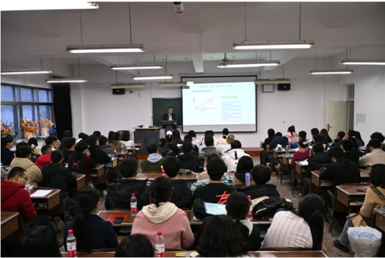 在课堂上,新增了许多特殊的“同学”——校长、研究生院院长、无涯书院院长、beat365平台官方网站领导班子成员、药物化学教研室的同事们,还有学院青年教师、毕业学生代表、在读研究生等等近50人济济一堂,与全体同学共同聆听了孙老师最精彩的一课。