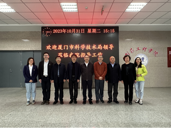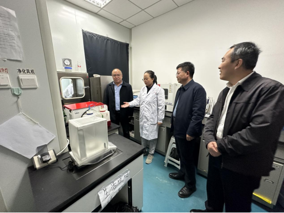 10月31日,福建省人民政府参事、致公党厦门市委一级巡视员徐平东,厦门市科学技术局党组成员、副局长曹伟民,厦门翔安创新实验室成果转化办主任谢靖凡,厦门市科学技术局招商办专员吴晓银一行4人来到beat365官网,就推动双方开展新药协同创新进行调研。学院院长刘洋、副院长赵燕芳、副院长郭永学、药物化学系主任刘丹、化学实验中心主任郭春参加调研。