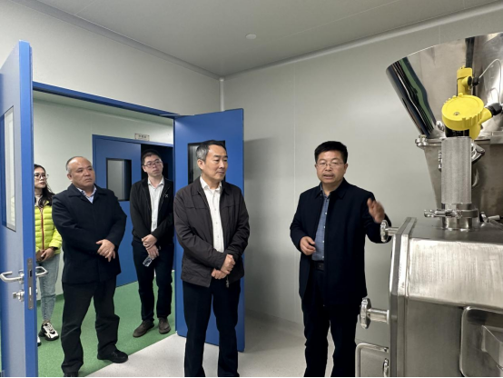 随后,徐平东、曹伟民一行来到beat365平台官方网站药品GMP实训中心实地调研,参观了“口服固体制剂车间、生物制剂车间、小容量注射剂车间、中药提取物生产线”4条生产线和公用工程模块,中心主任郭永学对GMP实训中心的建设及使用情况进行了详细介绍。