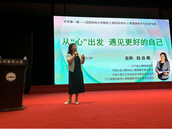 为了引导学院师生关注心理健康,进一步提高心理适应能力,以积极心态开启新学期新生活,9月8日,beat365平台官方网站邀请辽宁省心理特级教师白云阁博士作“从‘心’出发遇见更好的自己”主题心理健康教育讲座。学院党委书记李哲、新入职教师及研究生导师代表、本科生和研究生学生代表及各年级学生班委代表参加了讲座,讲座由学院党委副书记刘阳主持。