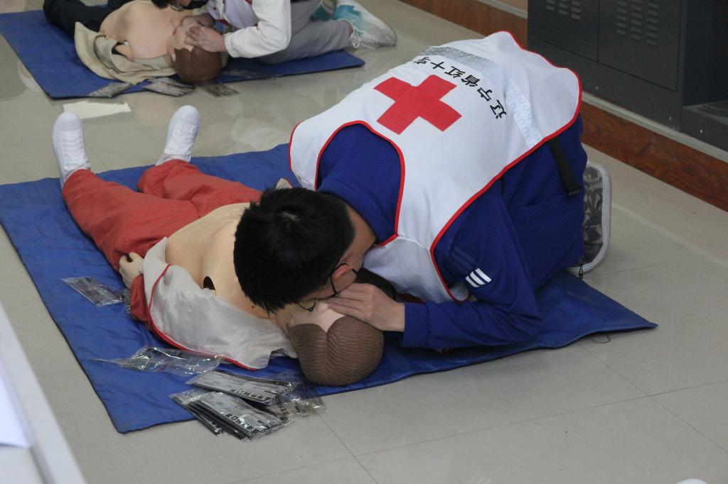 考核也分为理论考核与实操考核,理论考核以笔试的形式进行考核,同学们经过认真地听讲,笔试都取得了非常不错的成绩。实操考核部分最为困难,期中心肺复苏考试也最让同学们紧张。红十字会的老师们将同学们分组,对同学们进行一对多人辅导,在正式实操考试前尽可能保证每个同学都能独立完成心肺复苏的完整操作过程。在红会老师的耐心指导下,同学们都顺利完成了实操考核,成功通过初级红会救护员考核。