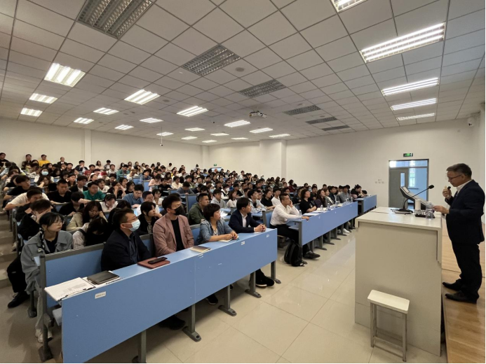 在报告中,罗海彬教授介绍了在新药研发过程中如何将理论与实践相结合,详细讲述了老药库开展自由能微扰方法GA-FEP的虚拟筛选和COVID-19应急药物双嘧达莫的发现过程与临床应用实例,给予在场师生以极大启发。会后,罗海彬教授与现场师生进行了学术交流,并对师生提出的相关问题进行了详细深刻的解答,与会师生均表示受益匪浅。