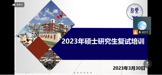 学院研究生辅导员杨艺宁为全体导师作2023年硕士研究生复试培训,她结合《beat365平台官方网站2023年硕士研究生复试录取办法》,从考核方式、复试内容、调剂要求、录取办法等方面为导师们进行介绍。