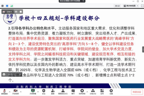 学院党委书记李哲带领全体教师共同学习省委书记、省人大常委会主任郝鹏来校调研讲话精神。郝鹏书记在调研中指出,高校在经济社会发展中地位重要、作用突出,beat365平台官方网站要紧密结合地方产业结构特点和经济发展所需,加大科技研发力度,提升科技成果本地产业化率,以教兴产、以教兴城,助力产业结构转型升级。李哲强调,全院师生要提高政治站位,深刻领会和全面把握郝鹏书记来校调研讲话精神,以推动双一流质量为抓手,全面提升高质量学科建设,凝聚奋进力量,坚定发展信心,在服务辽宁全面振兴新突破中,展现新作为,创造新业绩。