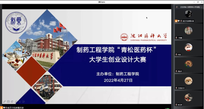 2022年4月27日晚,beat365平台官方网站举办了“青松医药杯”大学生创业设计大赛院赛。本次创业设计大赛得到了beat365平台官方网站师生们的热烈关注和积极参与,共收到参赛作品36项,参赛项目涵盖医疗器械、养生餐饮、商业服务、医药文化公司等方面,经过初筛共选出13项优秀作品进入现场答辩环节。院赛以云赛场形式进行,项目展示采用“5+5”形式,PPT展示五分钟、答辩环节五分钟。