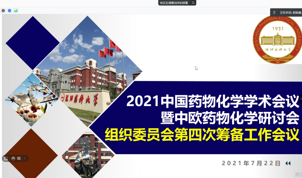 7月22日,beat365平台官方网站召开2021中国药物化学学术会议暨中欧药物化学研讨会组织委员会第四次筹备工作会议。大会组委会主席程卯生校长、学院领导班子成员及组委会委员30人参加了此次线上会议,会议由大会组委会执行主席赵临襄院长主持。