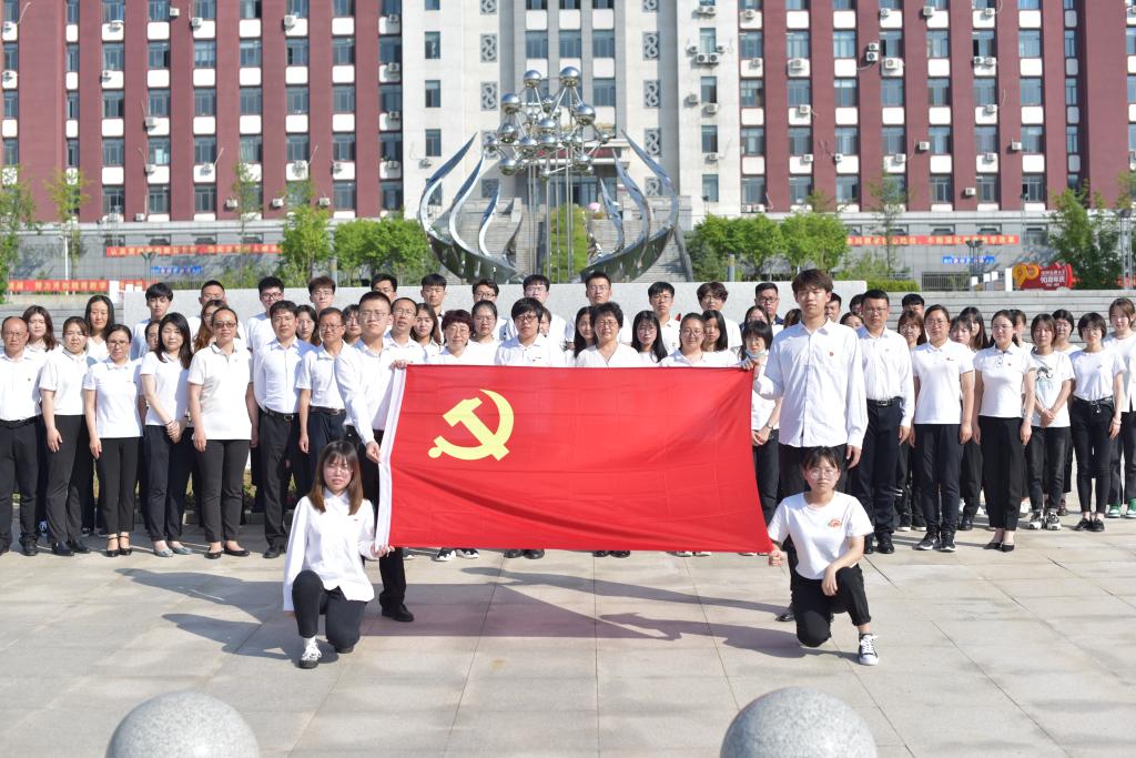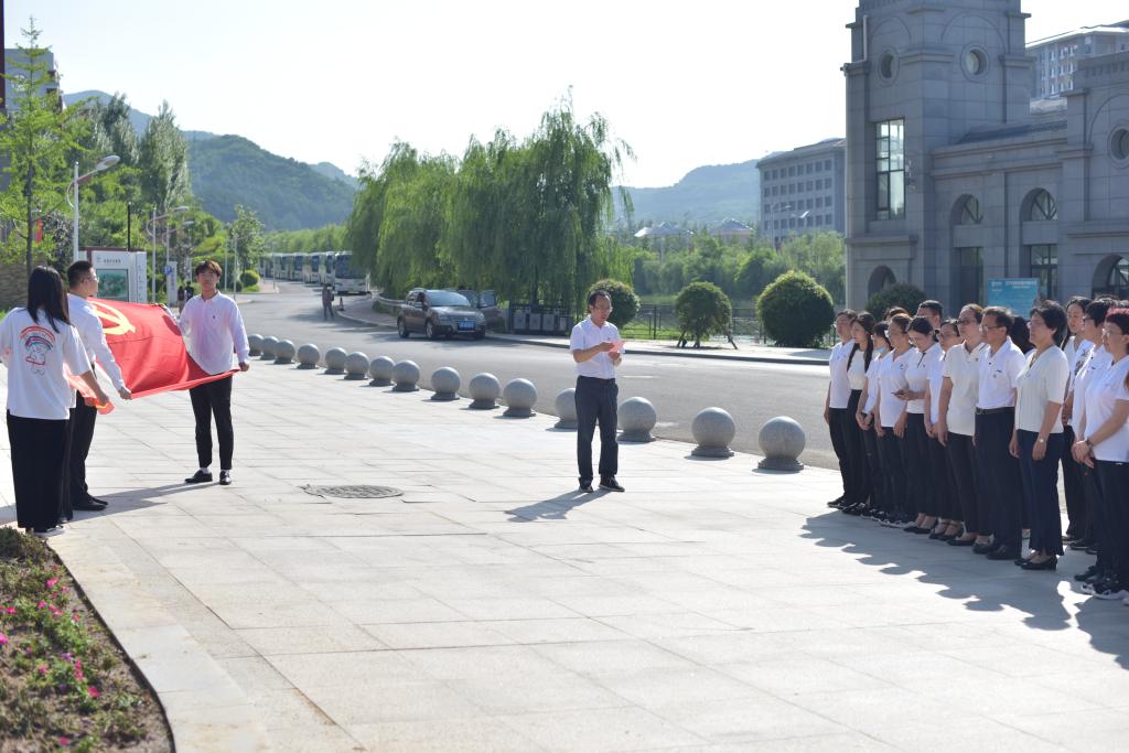 下午16时,学院师生党员在校训石广场前准时集结,他们胸前佩戴党徽,在学院党委兼职组织员史琳琳的带领下,举起右拳,面向鲜红的党旗,庄严宣誓。“我志愿加入中国共产党,拥护党的纲领,遵守党的章程……”宣誓声铿锵有力,激荡回旋在全体党员心间。