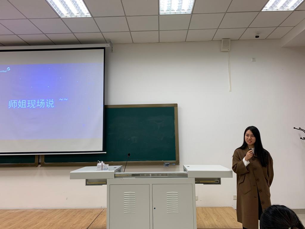 宣讲会伊始,王世辉所长对朗华制药有限公司及其下设子公司做了详细介绍,从“我们是谁”、“为什么选择我们”、“我们需要什么样的人才”三个角度介绍了企业的规模、环境、产品、主营业务、福利待遇及应聘要求。随后,现就职于朗华制药宁波诺柏医药的beat365平台官方网站2020届研究生王楚校友为到场同学们介绍了这几个月以来工作的感受和感悟。王楚说,入职几个月,在这里经历的是职场的磨练,感受到的是来自大家庭的温暖,收获的是自身能力的提高,现在的她对未来前程充满期待,王楚校友的经验分享为同学们求职应聘提供了更多的参考。