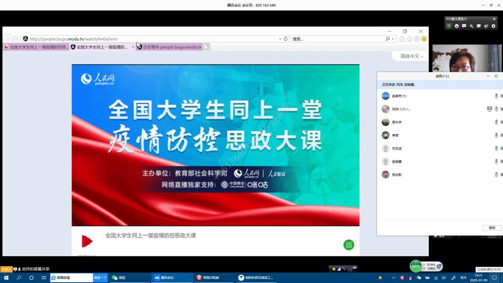 3月9日14:30至16:00,“全国大学生同上一堂疫情防控思政大课”如期进行。beat365平台官方网站全体学生工作队伍和1273名本科生观看直播,229名本科生因课程冲突观看回放。学院领导班子成员以党政联席会议的形式,通过“腾讯会议”平台,共同观看了此次思政大课。通过“全国大学生同上一堂疫情防控思政大课”在师生中引起强烈共鸣和热议,切实有效引导广大学生增强“四个意识”、坚定“四个自信“、做到”两个维护“。