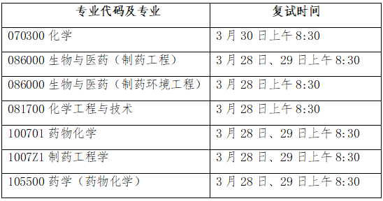 1.考生报考专业代码和专业名称为: 100701药物化学、105500药学【药物化学研究方向】、1007Z1制药工程、086000生物与医药【制药工程】。(具体复试内容见附件《beat365平台官方网站2022年药物化学、制药工程学科硕士研究生复试实施细则》)