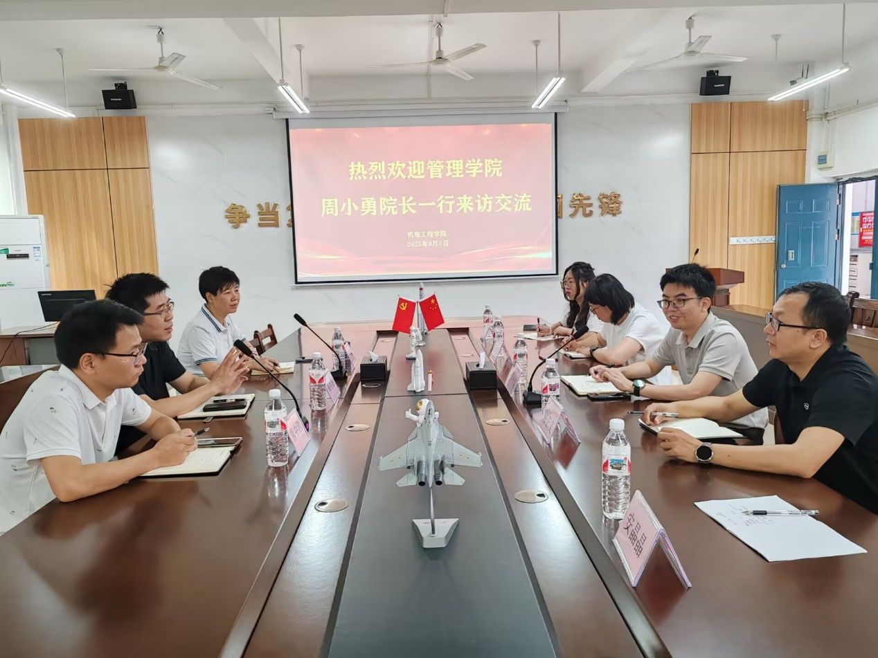 为促进学院学科发展,推动硕士点申报工作高效开展,6月5日,太阳集团见好就收9728院长周小勇率领副院长徐平磊、副院长阳正义等教师前往机电工程学院进行考察交流。机电工程学院院长韩兴国、副院长宋小辉、副院长熊中刚热情接待了周院长一行。