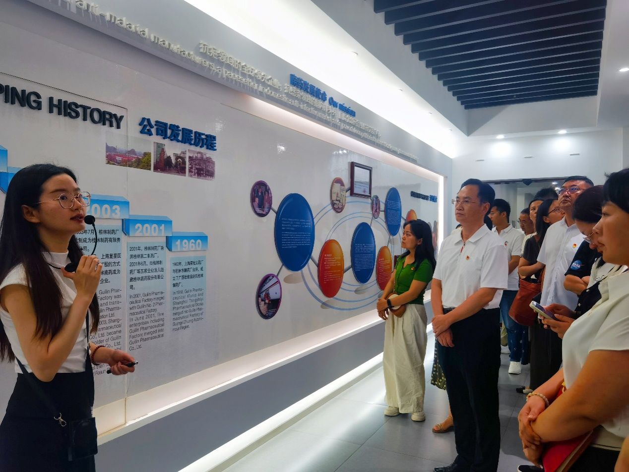 学院教师党员先后参观桂林南药公司展厅、红色“加油站”,认真听取讲解员介绍桂林南药的发展历程和企业文化、企业党建品牌创建和党员先锋模范事迹,亲身领略南药历经数十年积累的企业文化底蕴。随后,教师党员一行在工作人员带领下,一起走进南药制剂大楼无菌车间,参观企业拳头产品“青蒿琥酯”生产工作线,了解“青蒿琥酯”的创新成果。实地参观结束后,大家观看了企业宣传片,进行交流互动,了解青蒿琥酯从实验室产品到非洲疟疾重灾区救星的传奇经历,了解党建引领企业高质量发展的丰富硕果,了解企业科研团队深入国际抗疟灾区挽救非洲疟疾患者生命的感人事迹。