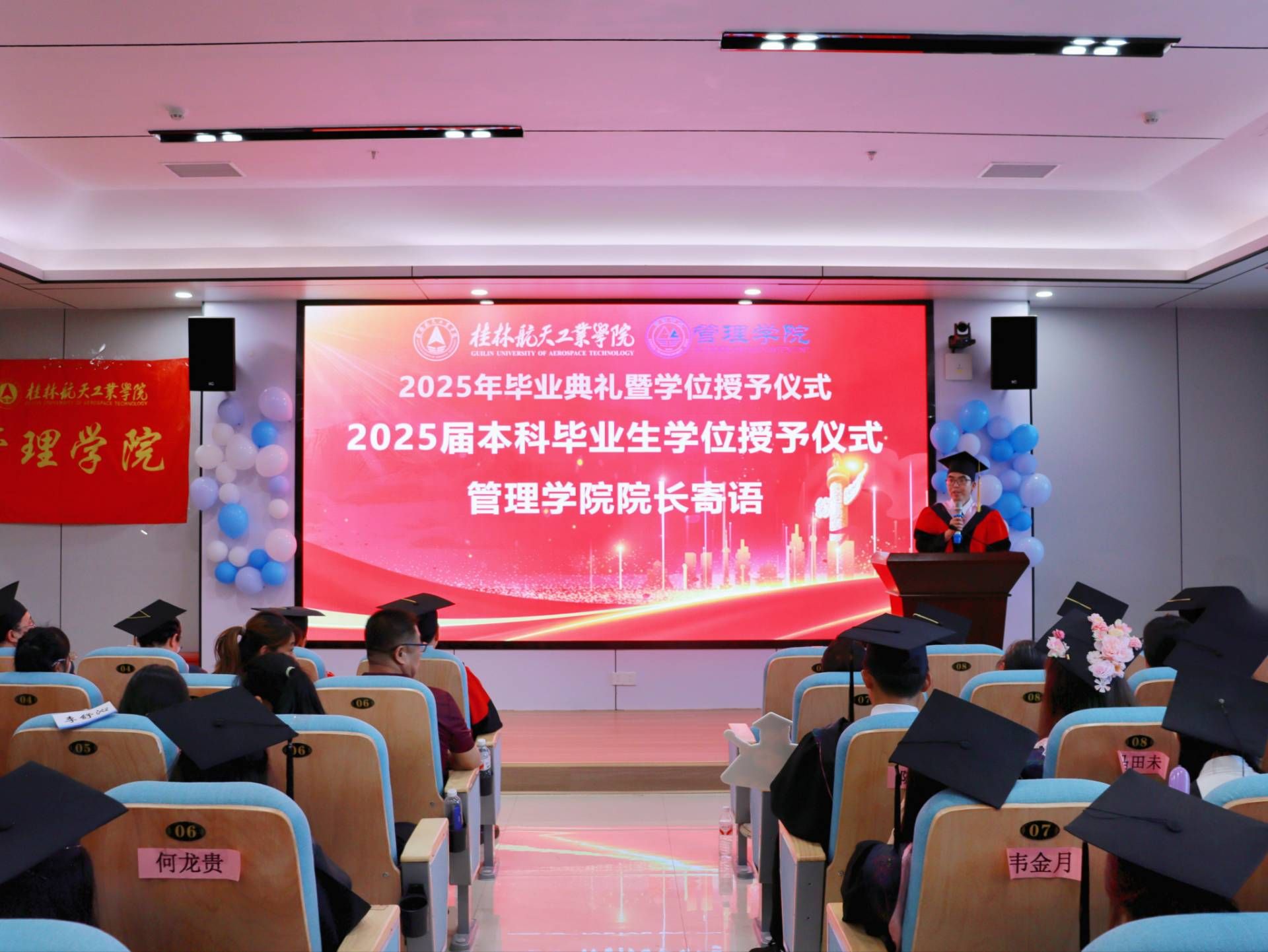 六月的桂航,阳光灿烂,繁花似锦。6月19日,太阳集团见好就收97282025届毕业典礼暨学位授予仪式在南校区问天楼小报告厅隆重举行。学院党委书记尹剑武、院长周小勇、党委副书记潘小玲、副院长阳正义、副院长徐平磊、各教研室主要负责人、毕业班辅导员、满载收获的2025届毕业生及家长代表齐聚一堂,共同见证这一庄严而充满希望的青春盛典。
