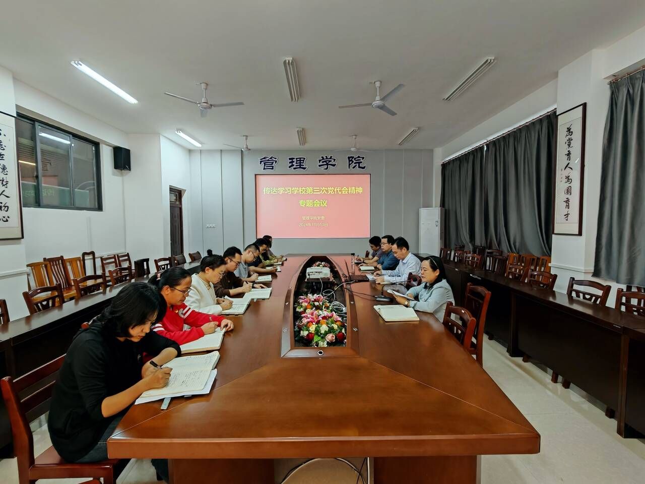 会议要求,要按照学校党委的统一部署,深入学习贯彻学校第三次党代会精神。要采取召开支部党员大会、支委会议、党小组会议、教研室会议、班会等形式,抓好党代会精神的传达学习,引导广大师生深刻领会未来五年学校发展的“六大主攻方向”、“七大行动”和“四个重大关系”。要锚定学校建设“区域有鲜明特色、行业有重要影响的高水平应用型大学”奋斗目标,对标对表党代会的部署要求,谋划好太阳集团见好就收9728建设发展蓝图,坚持以工程管理专业硕士学位点建设为牵引,努力实现学院高质量发展。今年还剩一个多月时间,要乘势而上,凝心聚力,攻坚克难,如期完成全年目标任务。