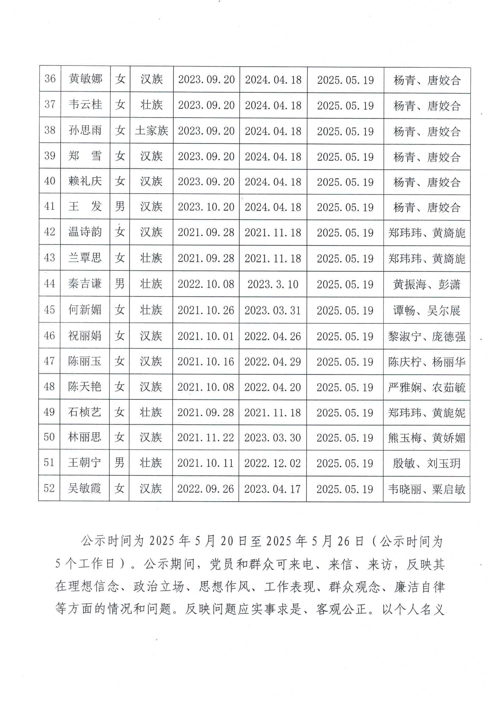 关于确定黄佳丽等25名同志为发展对象的公示