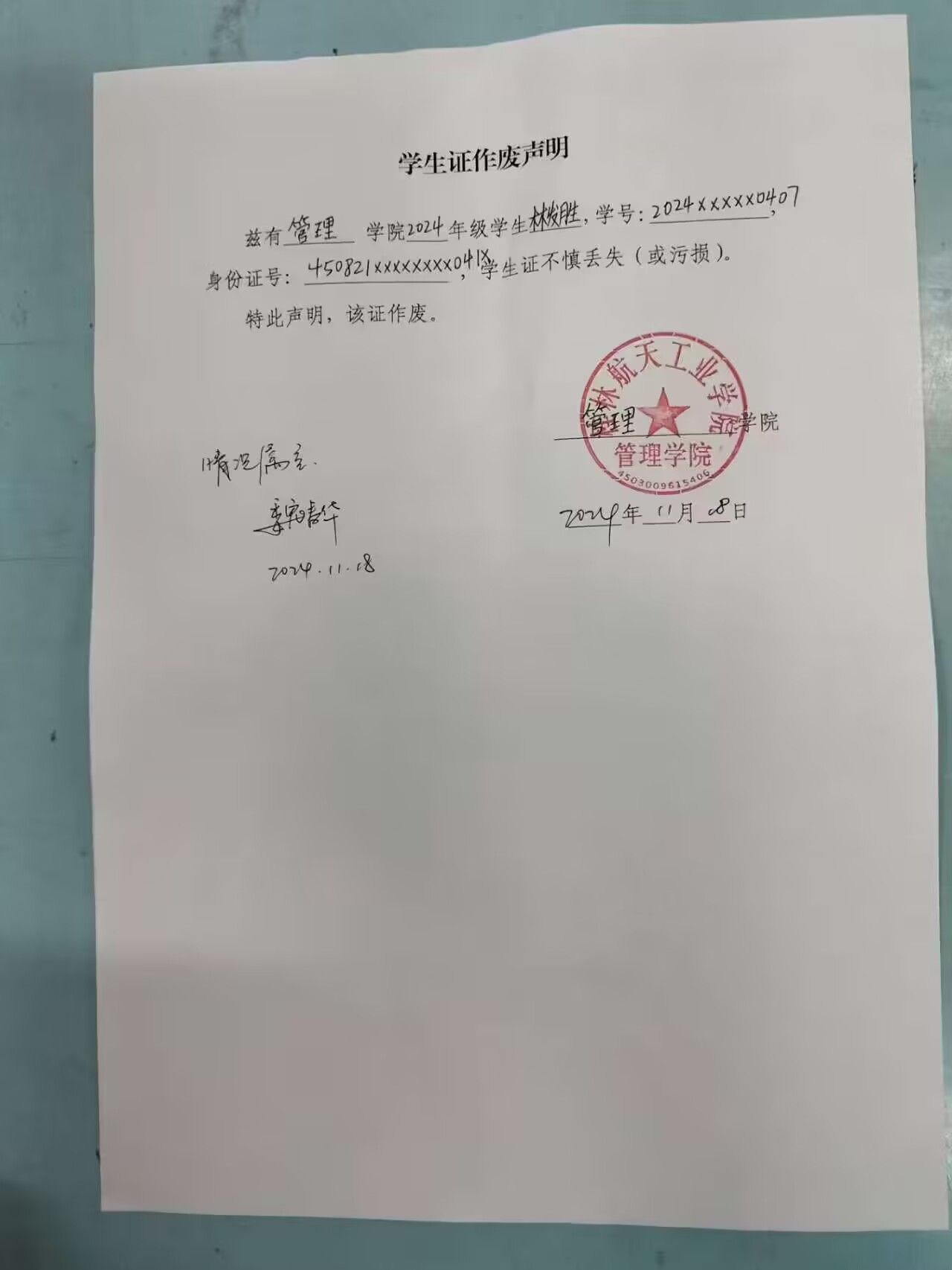 林发胜学生证作废声明