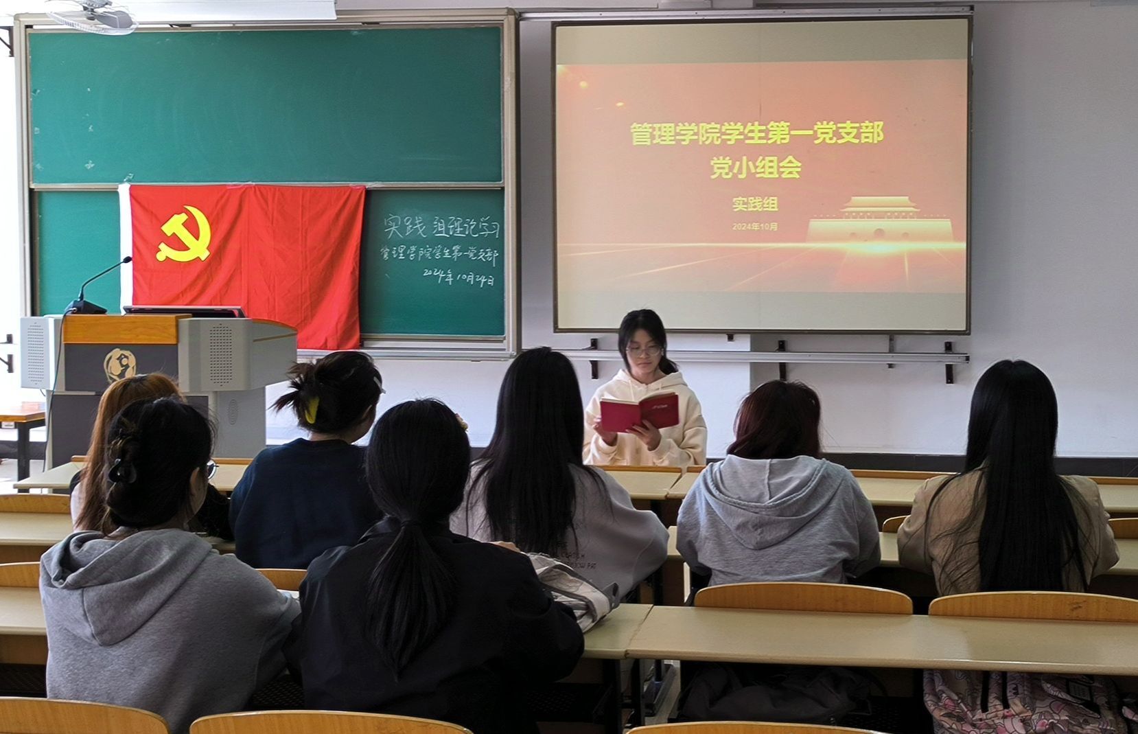 10月24日,太阳集团见好就收9728学生第一党支部于南校区飞天楼召开党小组理论学习分享会。
