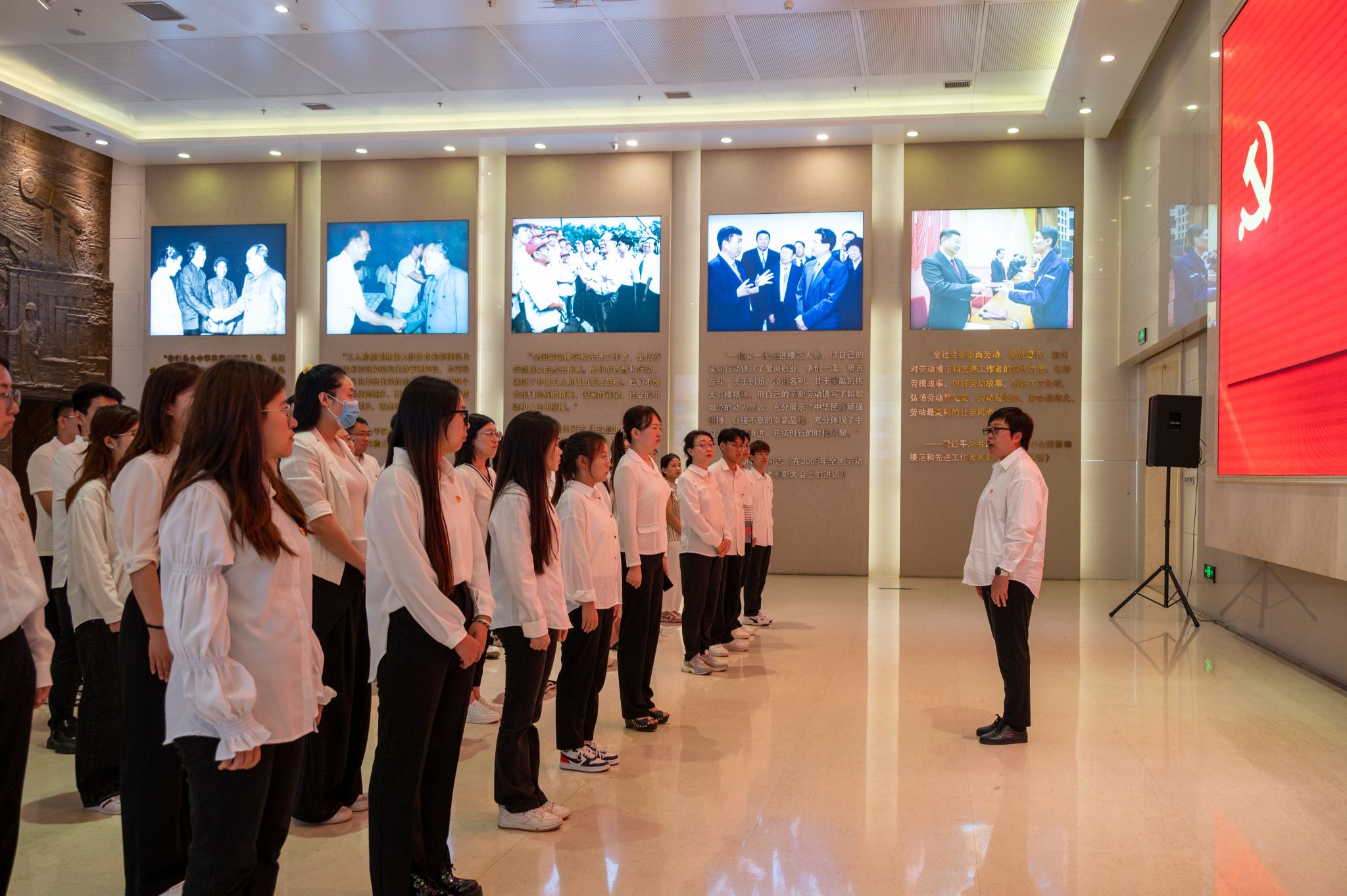 在沈阳劳动模范纪念馆4楼大厅内,全体党员庄严地重温了入党誓词。