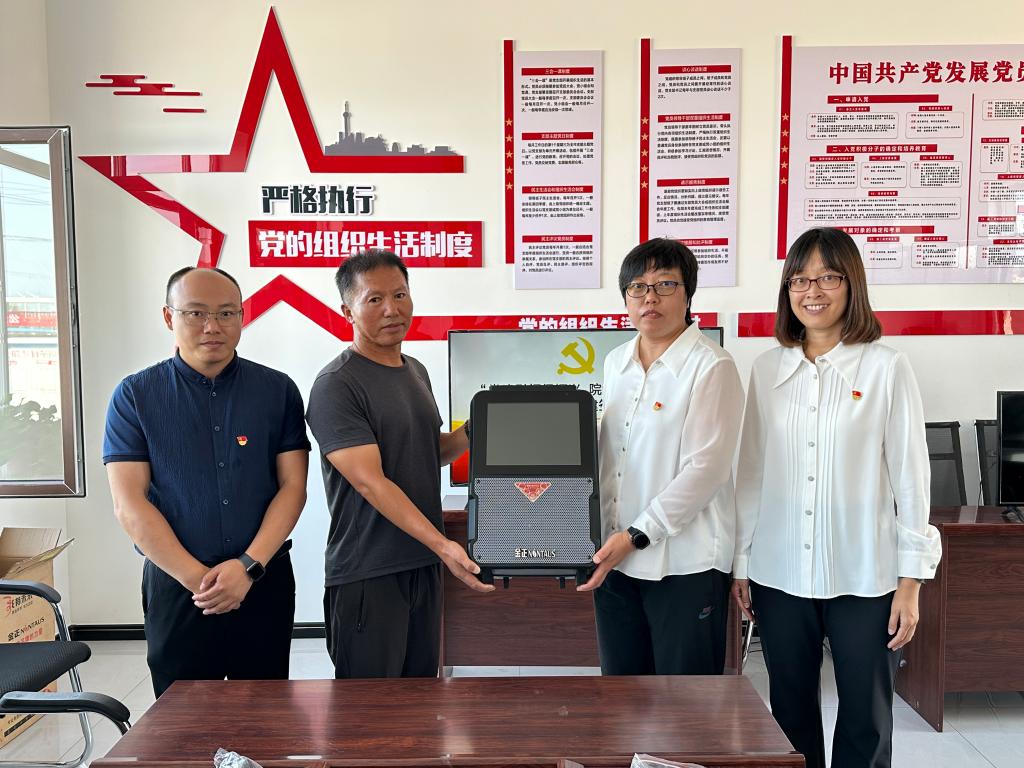 beat365平台官方网站党委书记李哲和党委副书记刘阳向小塔子村赠送蓝牙音响。