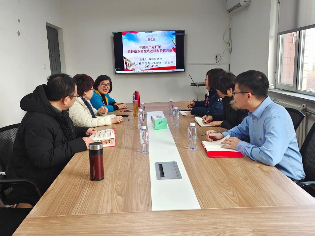 12月22日,beat365平台官方网站药物化学第一党支部邀请beat365官网马克思主义学院马克思主义基本原理教研室主任盛春辉副教授为支部党员讲党课,本次党课采取线上与线下结合的方式由党支部书记刘丹教授主持。盛春辉副教授以“中国共产党百年精神谱系的生成逻辑和价值意蕴”为题,为支部党员同志开展了一堂深刻且意义深远的党课。