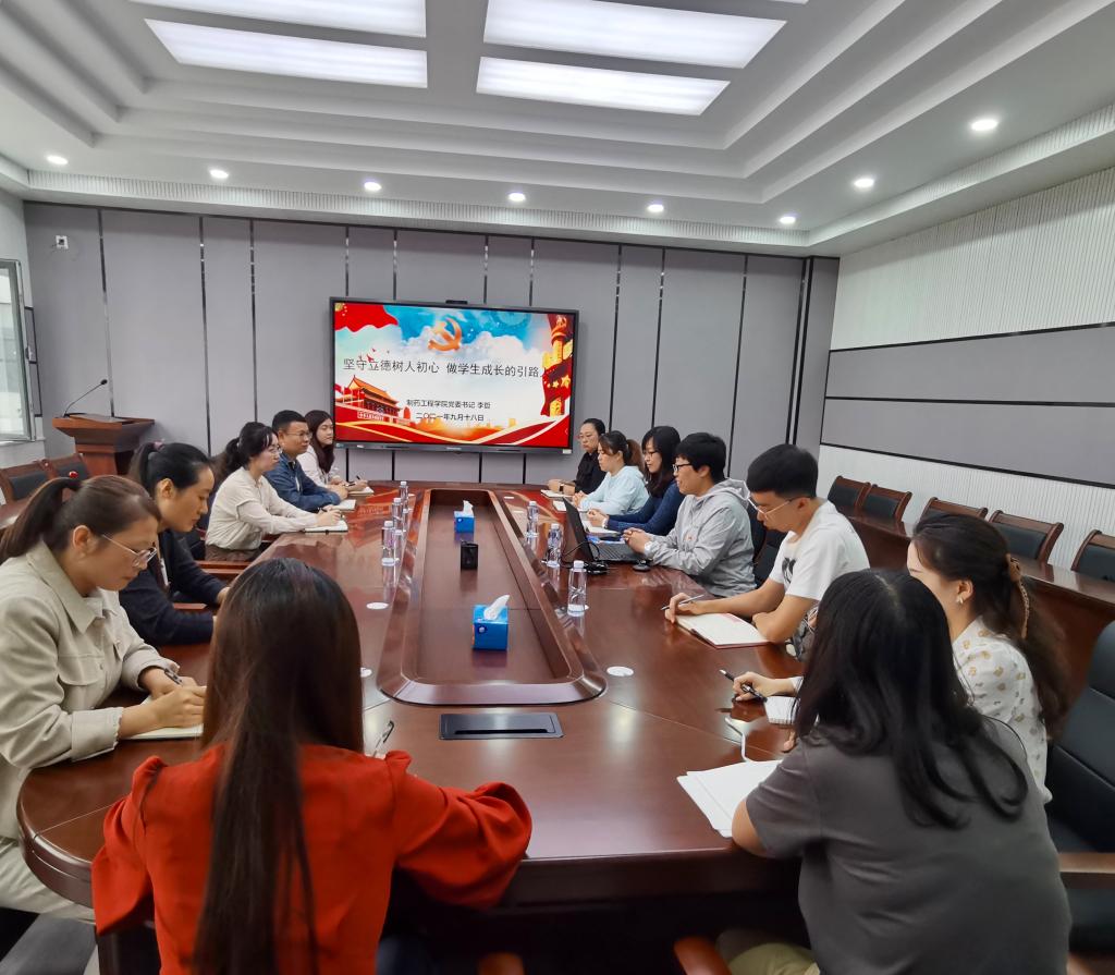 为深入学习贯彻习近平总书记关于干部队伍建设的重要论述,切实把党史学习教育成果转化成为师生办实事的实践行动,提升学院学生工作队伍的育人水平和业务能力,促进青年教师成长成才,beat365平台官方网站党委书记李哲于9月18日在制药楼227会议室,围绕“坚守立德树人初心做学生成长的引路人”主题,为学生支部的教师党员和积极分子上了一堂生动的专题党课。学院党委副书记刘阳、全体辅导员及教学秘书参加了会议。
