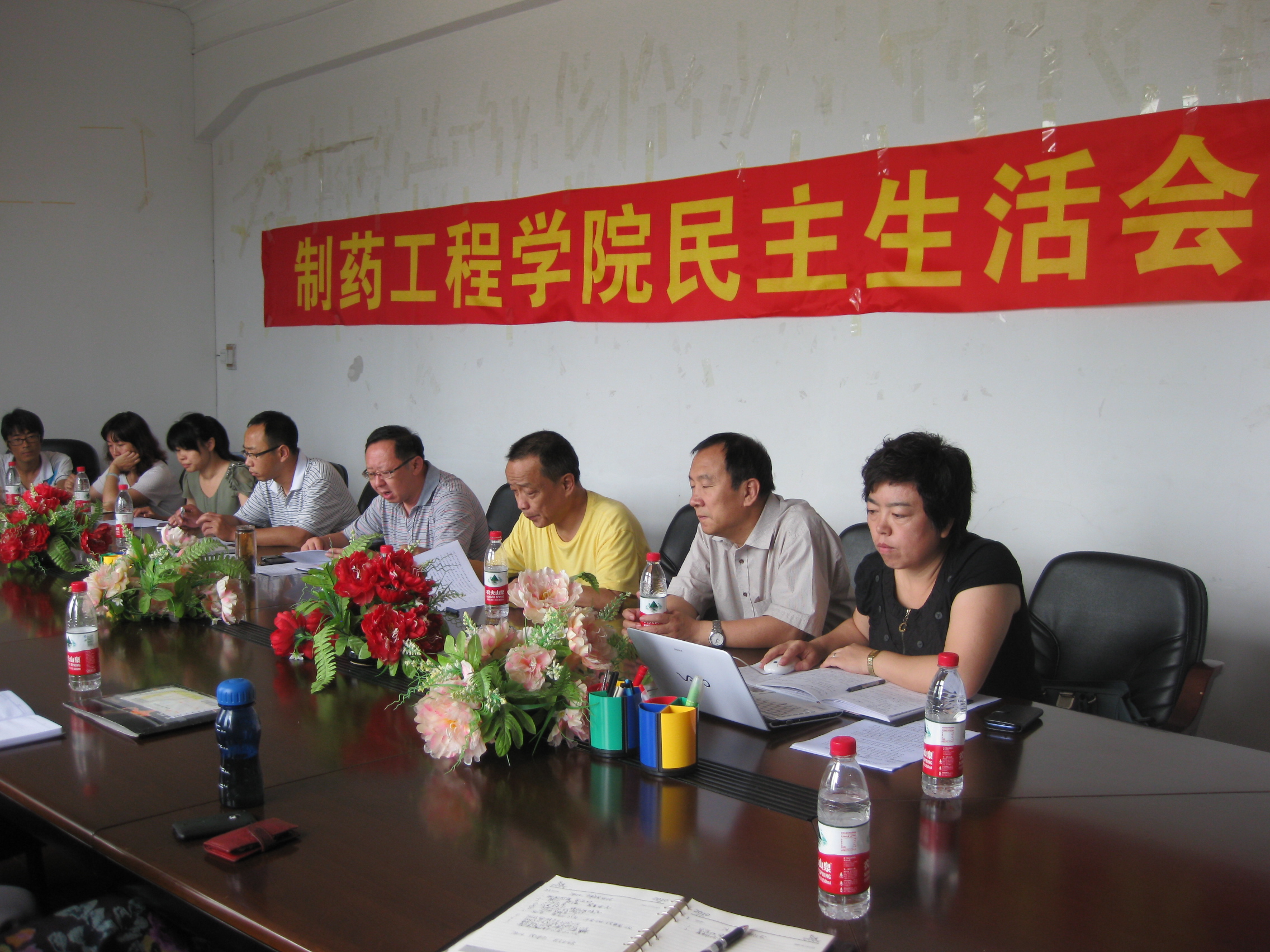 缪硕宁副校长发表讲话。他首先肯定了学院上半年各项工作取得的成绩,对班子成员的工作表现表示满意,对学院今后的工作提出了新的要求。首先,领导班子成员要加强学习,把思想统一到党的十八大精神上来,全面把握学校今后发展的战略布局,注重发挥学院的学科和人才优势,加强对外交流与宣传,团结带领全院教职工为学校的发展建设作出应有的贡献;其次,继续保持和发扬学院团结一心,埋头苦干的奉献精神,注重加强团队建设,发挥团队在教学、科研、学科建设等方面的引领示范作用,努力打造一流的教学、科研成果,不断提升学院的核心竞争力;第三、班子成员要廉洁自律,虚心听取广大教职工的意见和建议,勇于开展批评与自我批评,进一步改进工作作风,为全院教职工树立典范。